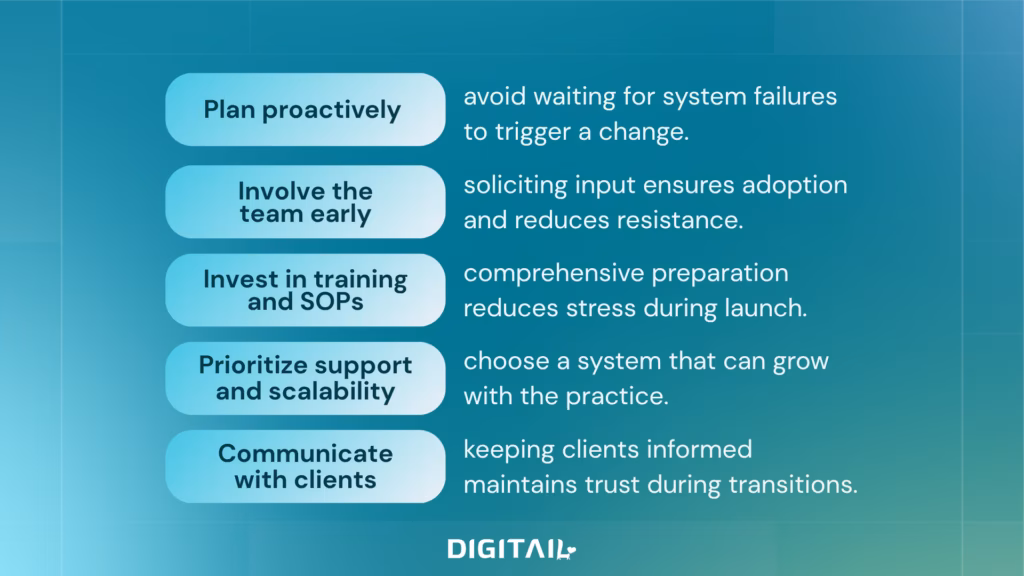 Covina Animal Hospital’s experience highlights several best practices for PIMS transitions: